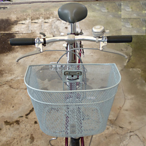 左:100円均一で前かごを購入、一回り小さくなった、¥540-。 右:今までの物
