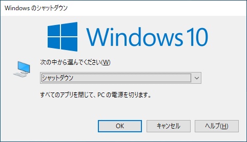 右端のシャットダウンが選択されているので、Enterキーを押し下げると断になります。
