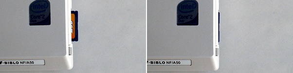 機種により、PCカードスロットの位置が違います。このPCは右横手前にあります。