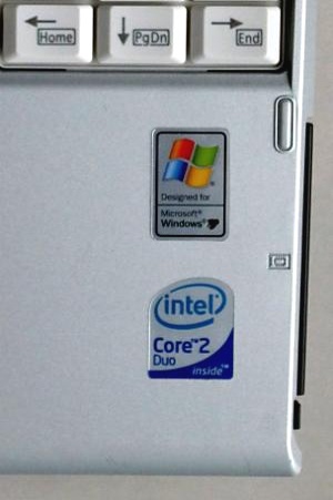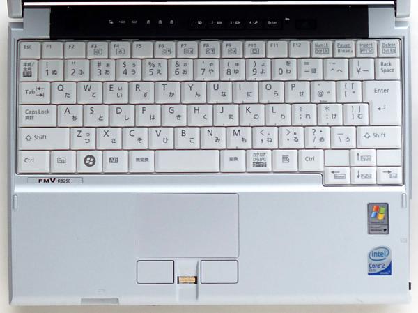 あまり使われなかったのかキーボード面は、9年経過したとは考えられないくらい綺麗でした。貼り付けてあるラベルは、WinXPとCore2のようです。