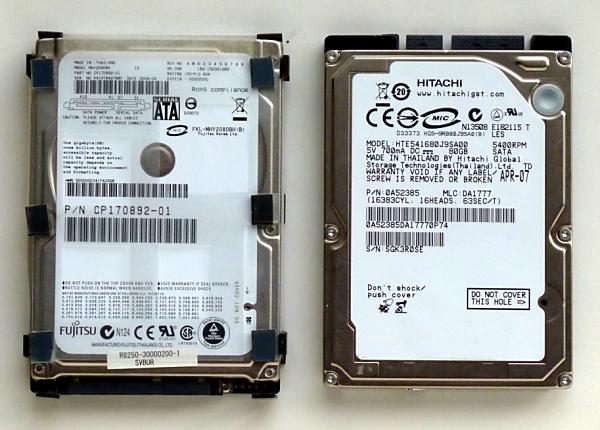 左の今まで使われていたHDDには、クッション材が周囲に取り付けられています。 右の実験したHDDにこれらのクッション材を移動するのは大変なので、クローンコピーして元のHDDに戻しました。