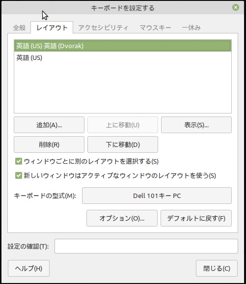 Dvorak(ドボラック) OSがLINUX MINTの場合