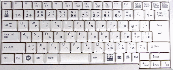 標準的な日本語キーボード。キーが1個増えました。下段右に、ALT。2008年製。FMV-BIBLO NF/A50。