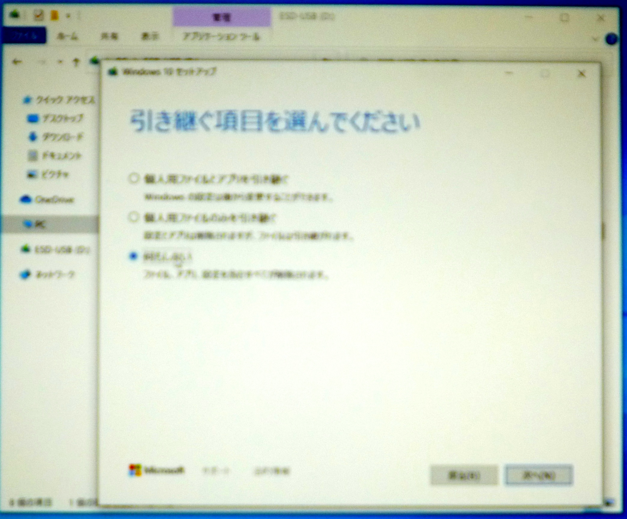 引き継ぐ項目を選んでください。何も引き継がない、を選択。次へをクリック。