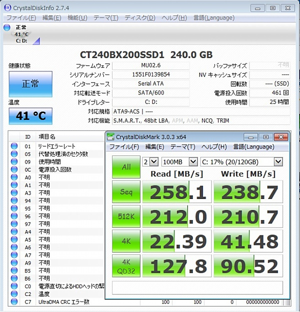 ポートの転送モードはSATA/600 ですが、期待したほどの速度は出ません。