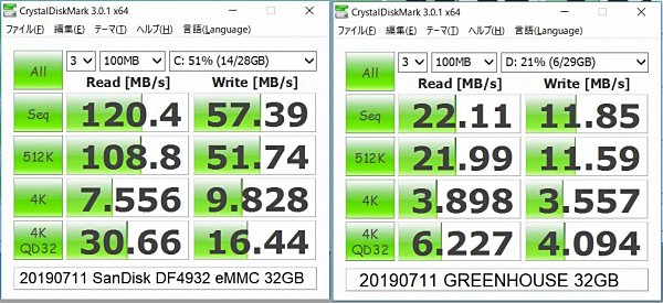 eMMC、MSD 転送速度