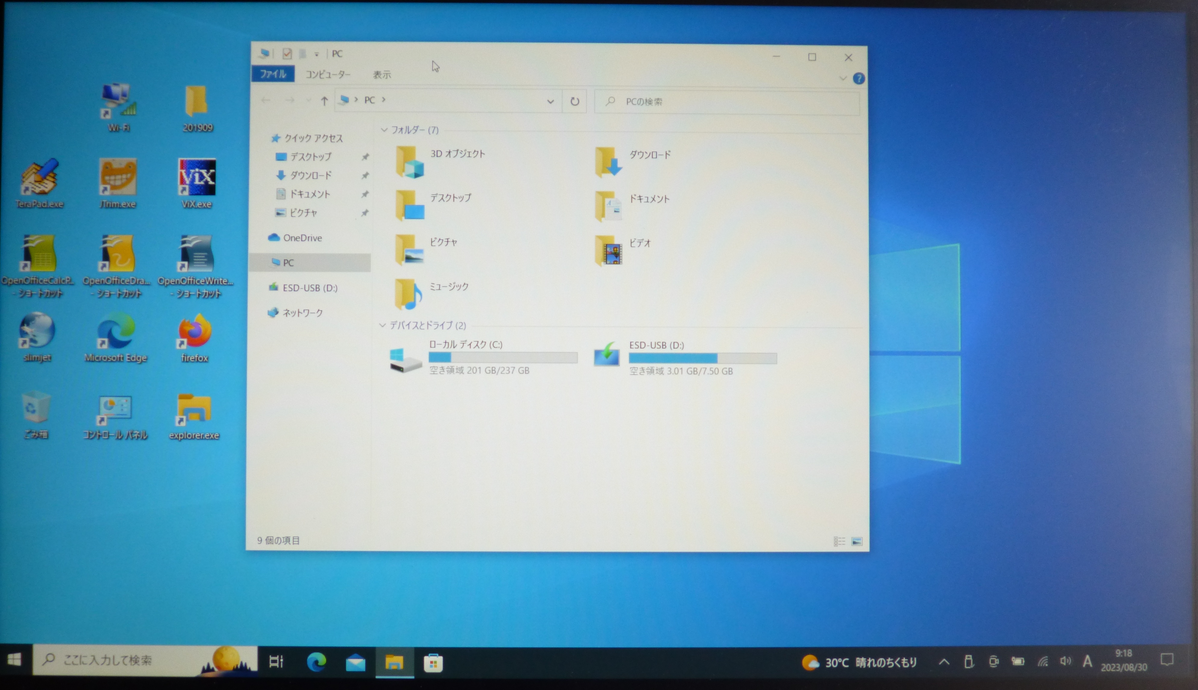 エクスプローラーを開いて、USBメモリーを開く。