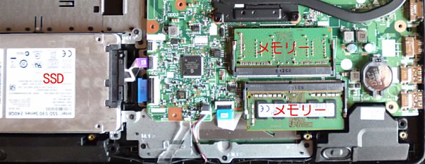 動作が緩慢なので、HDDをSSDに取替え、メモリーを追加して、4GBx2=8GBにします。